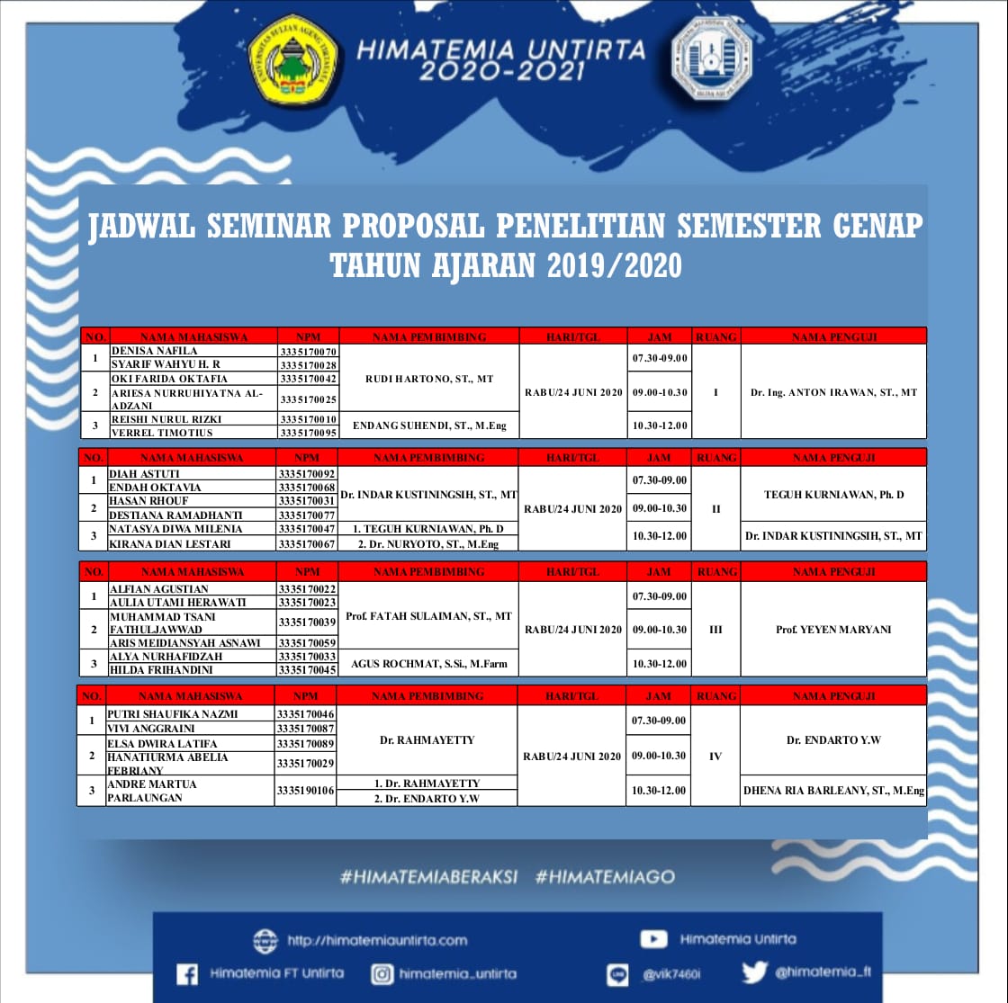 Jurusan Teknik Kimia » JADWAL SEMINAR PROPOSAL SKRIPSI BIDANG …