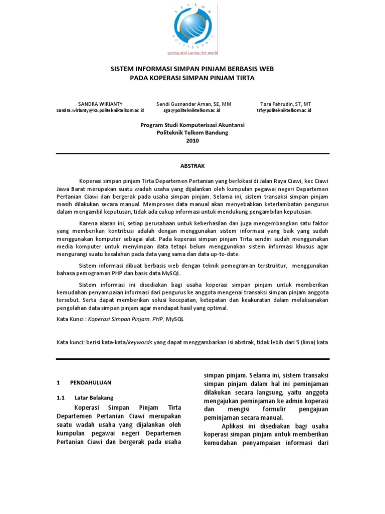 PDF) ANALISIS DAN DESAIN SISTEM INFORMASI SIMPAN PINJAM PADA KOPERASI SEJAHTERA BERSAMA BANDUNG