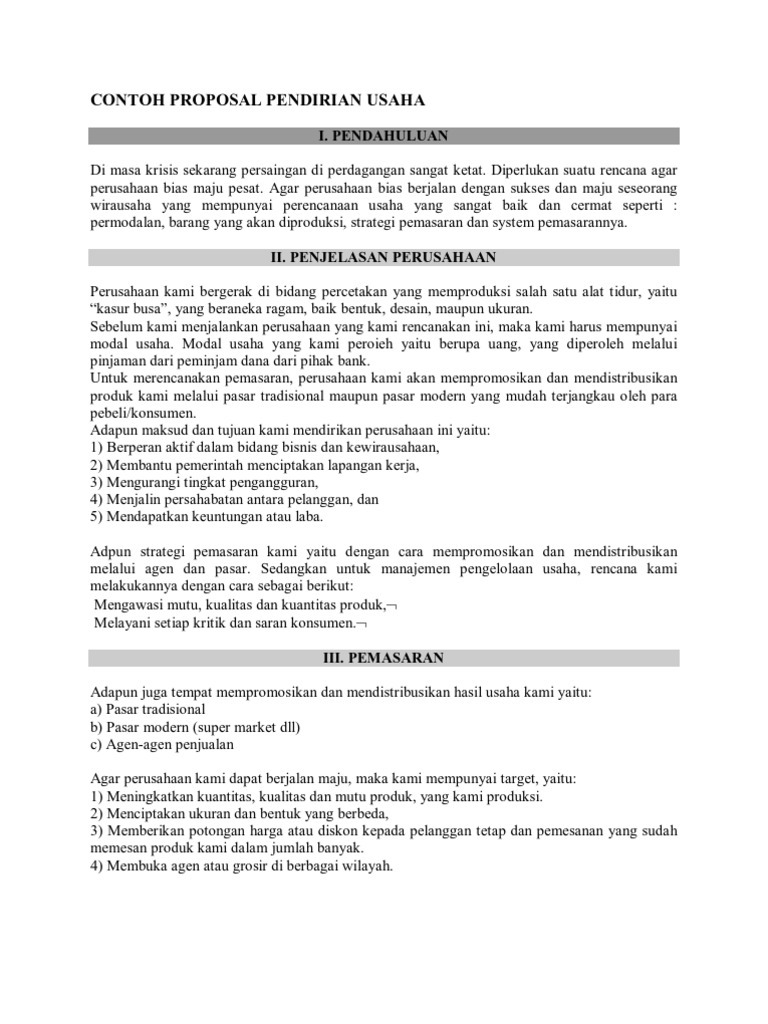 DOC) Contoh proposal usaha | Nur Harun - Academia.edu