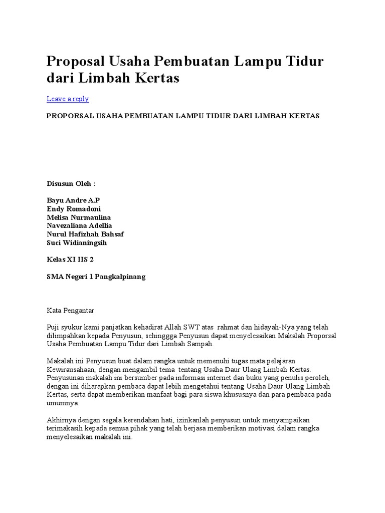 Proposal Usaha Membuat Lampu Tidur dari Limbah Kertas | sman1pkp11iis2suci