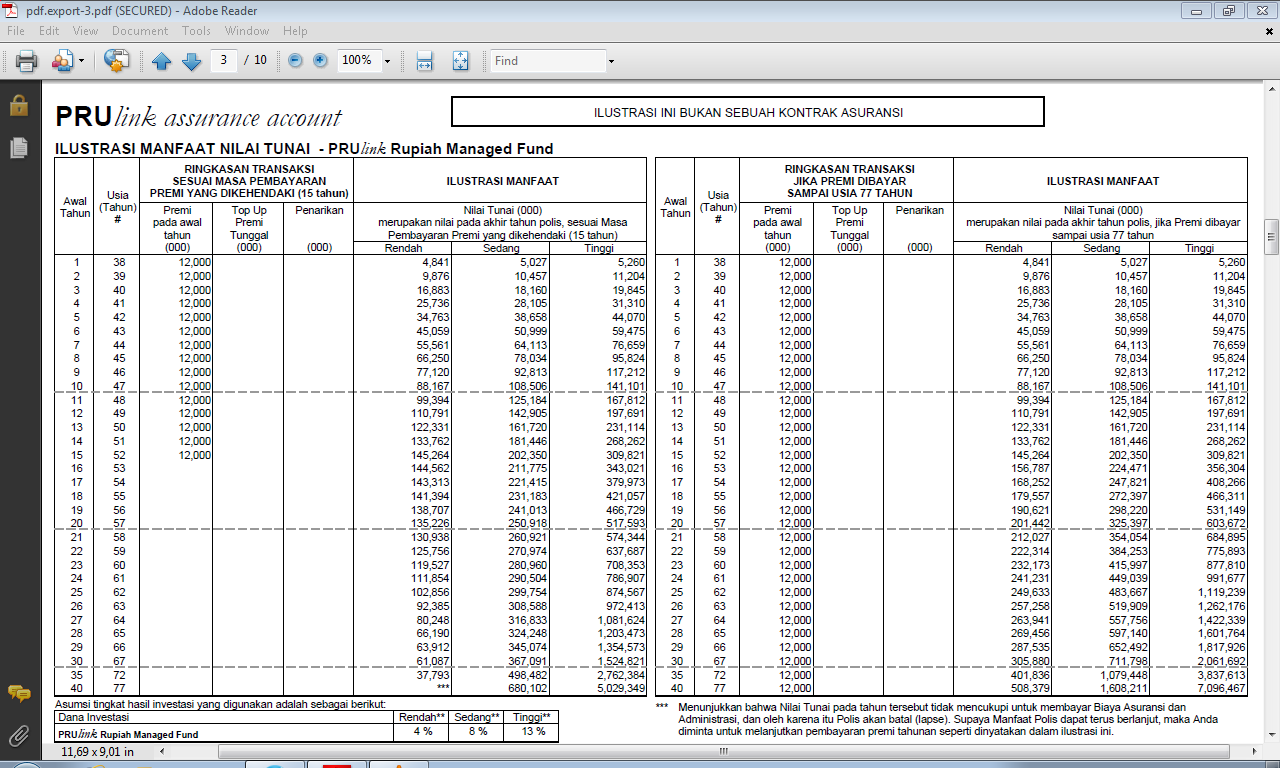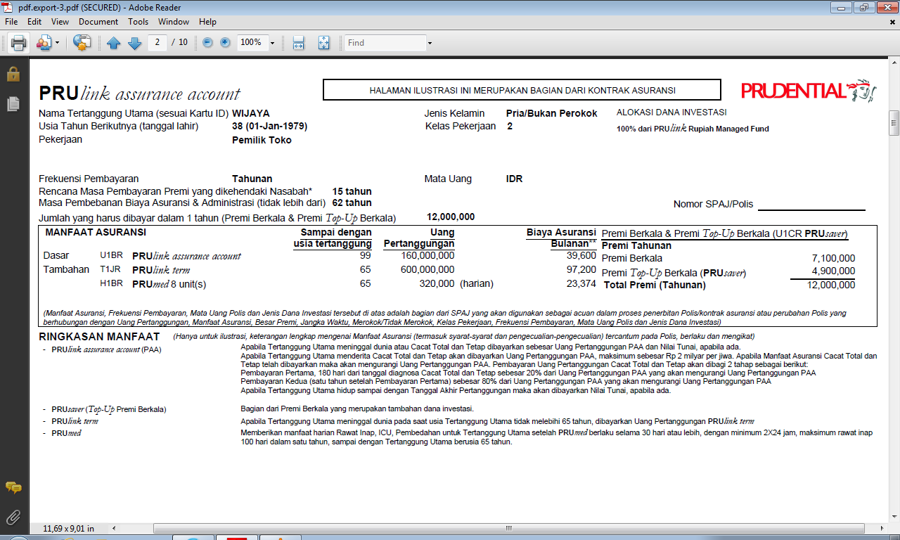 Tabel Premi dan Manfaat Asuransi Prudential - Pru HS Plus