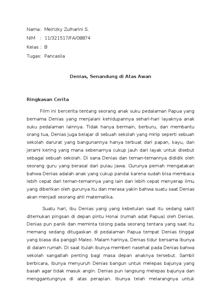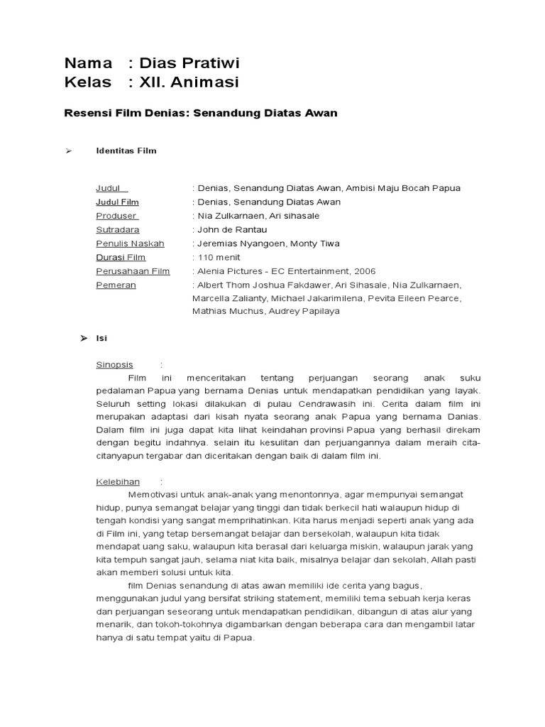 bindo Resensi Film Denias.docx - Nama Dias Pratiwi Kelas XII Animasi Resensi Film Denias Senandung Diatas Awan Identitas Film Judul Denias Senandung | Course Hero