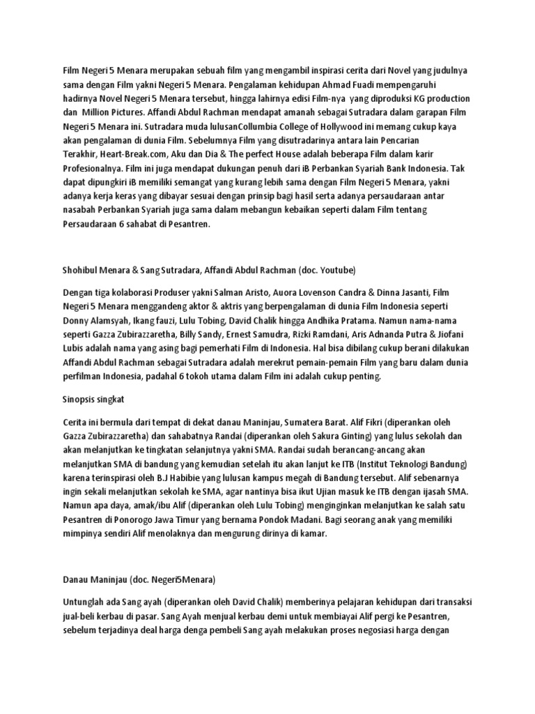 DOC) Analisis Film Negeri 5 Menara | Emaa Iqlima - Academia.edu