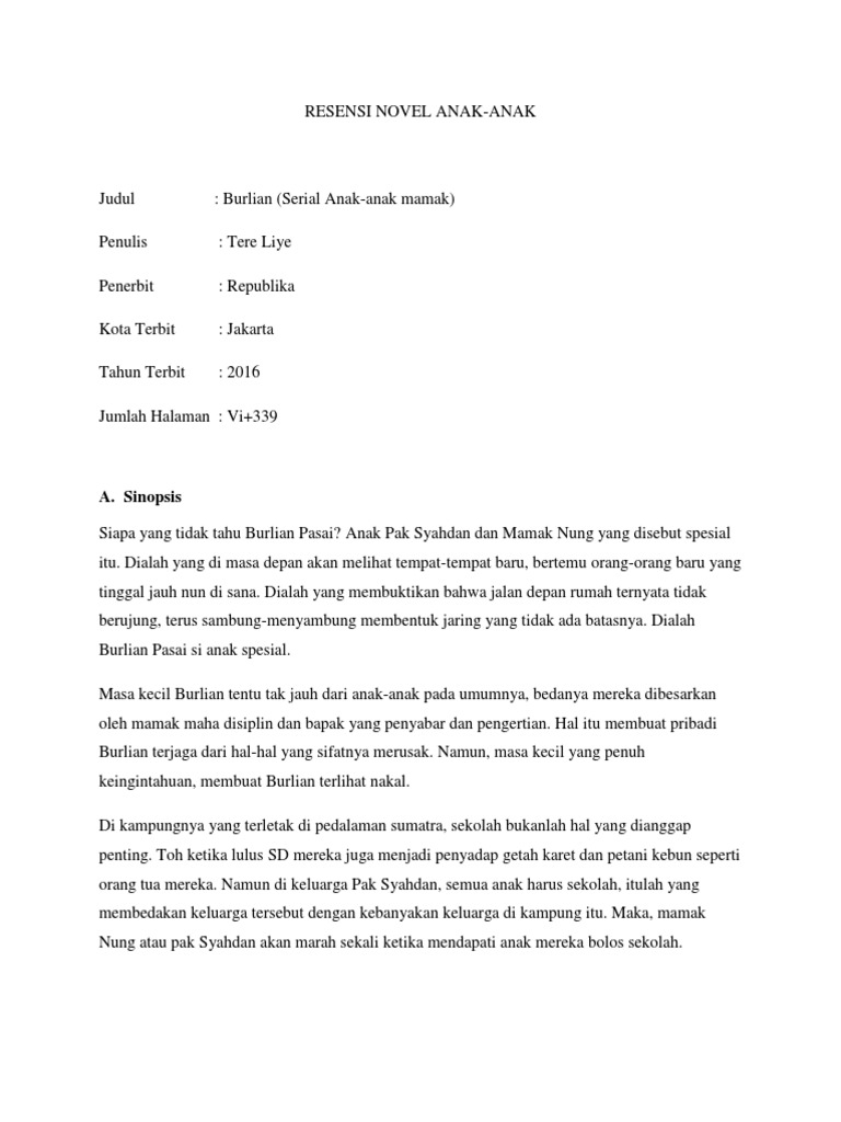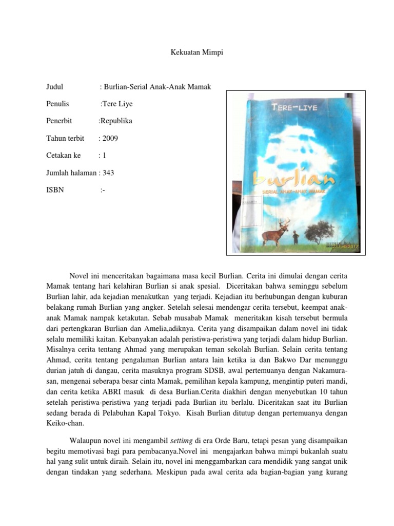 Resensi Novel Burlian (Serial Anak-anak Mamak) Karya Tere Liye Belajar Menulis Indonesia