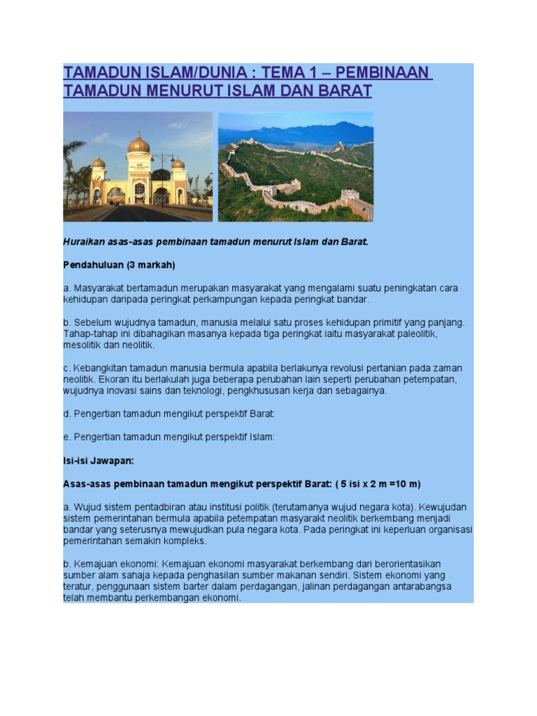 Tamadun Islam/Dunia: Tema 1 – Pembinaan Tamadun Menurut Islam Dan …