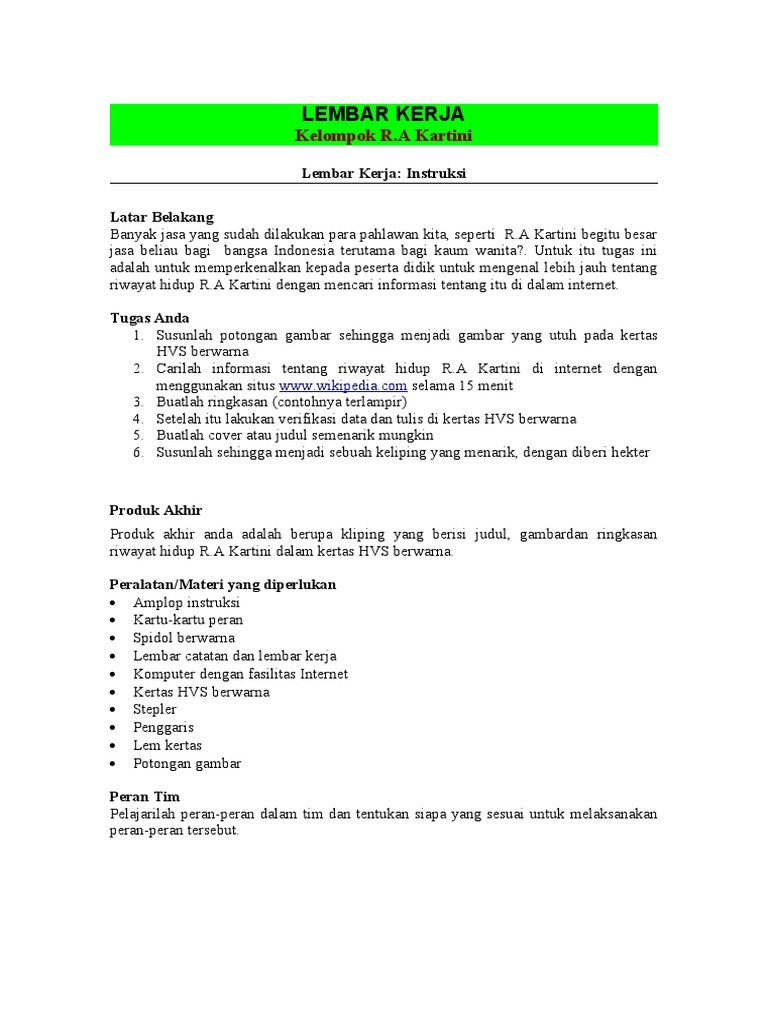 Lembar Kerja: Kelompok R.A Kartini
