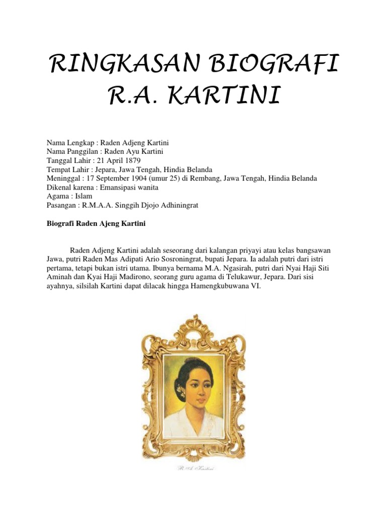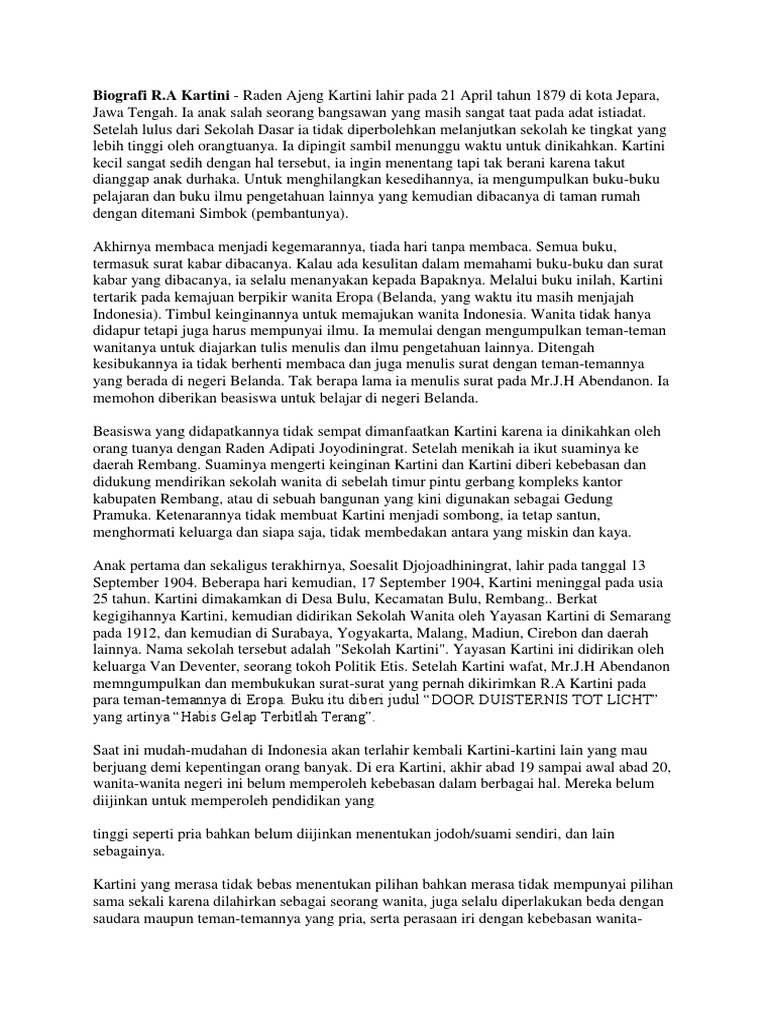 Biografi Kartini.docx - Biografi R.A Kartini Wanita Indonesia R.A Kartini atau Raden Ayu Kartini adalah salah satu sosok wanita yang menjadi pelopor | Course Hero