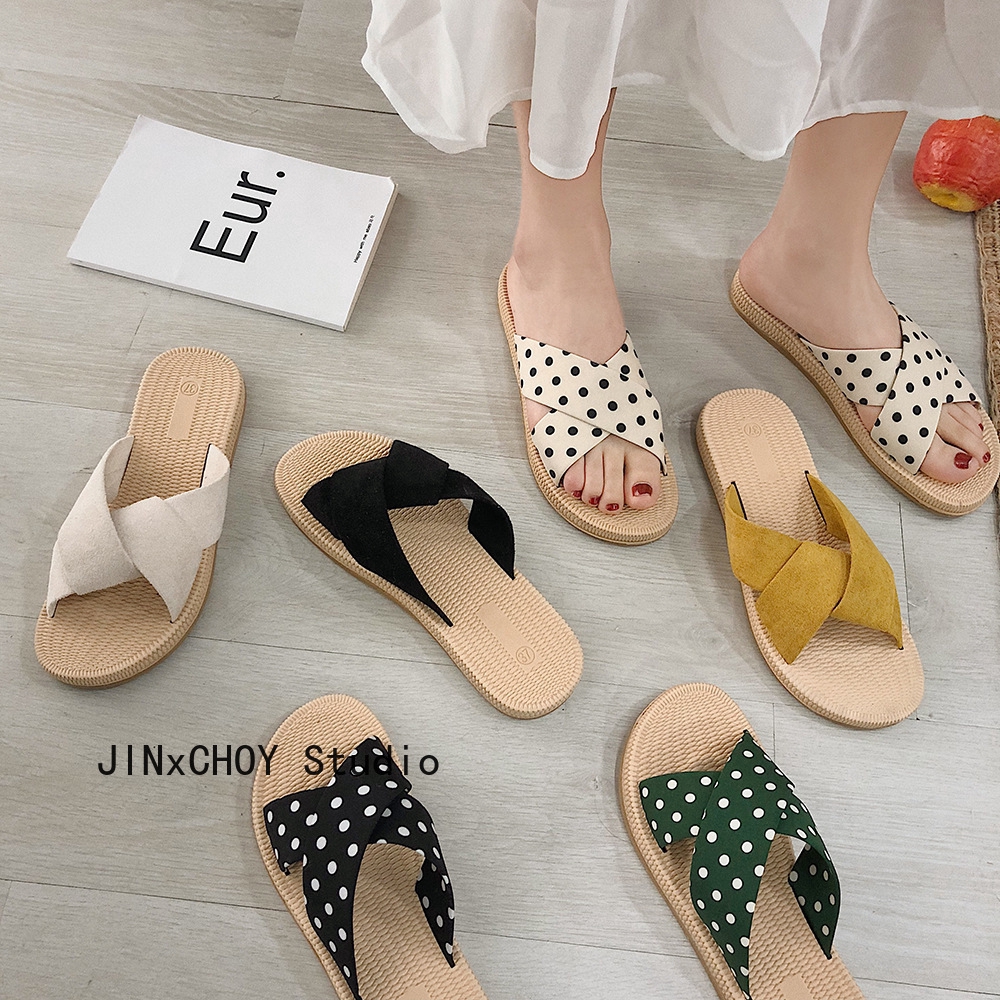 Sandal Selop Flat Open Toe Bahan Kain Untuk Wanita | Shopee Indonesia