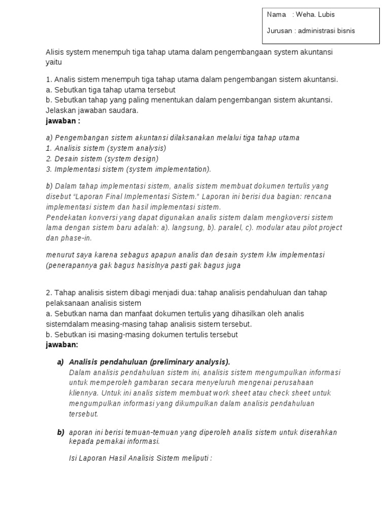 Alisis System Menempuh Tiga Tahap Utama Dalam Pengembangaan System Akuntansi Yaitu