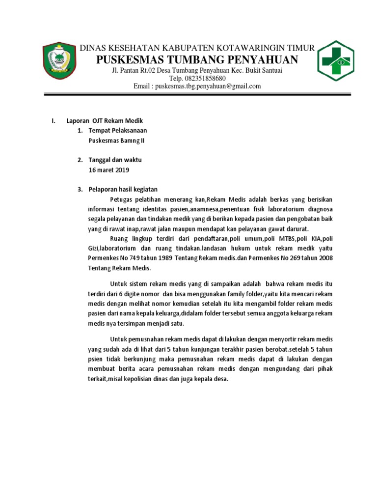 Contoh Laporan Rekam Medis Di Puskesmas - Kumpulan Contoh Laporan