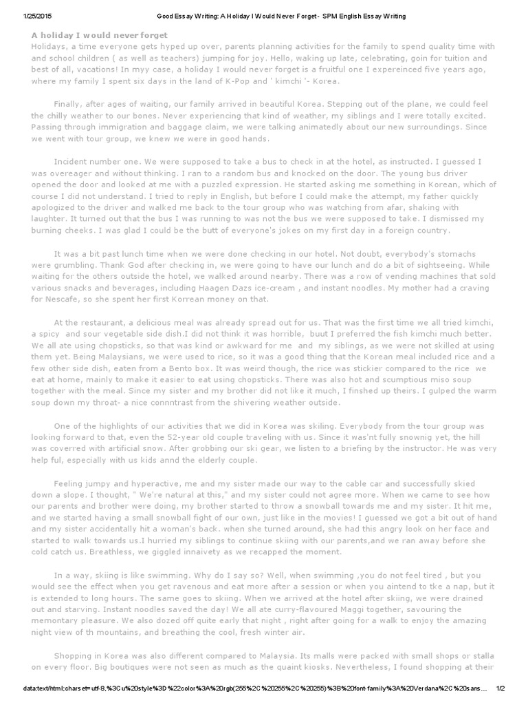 Good Essay Writing_ a Holiday I Would Never Forget - SPM English Essay Writing | Meal | Foods