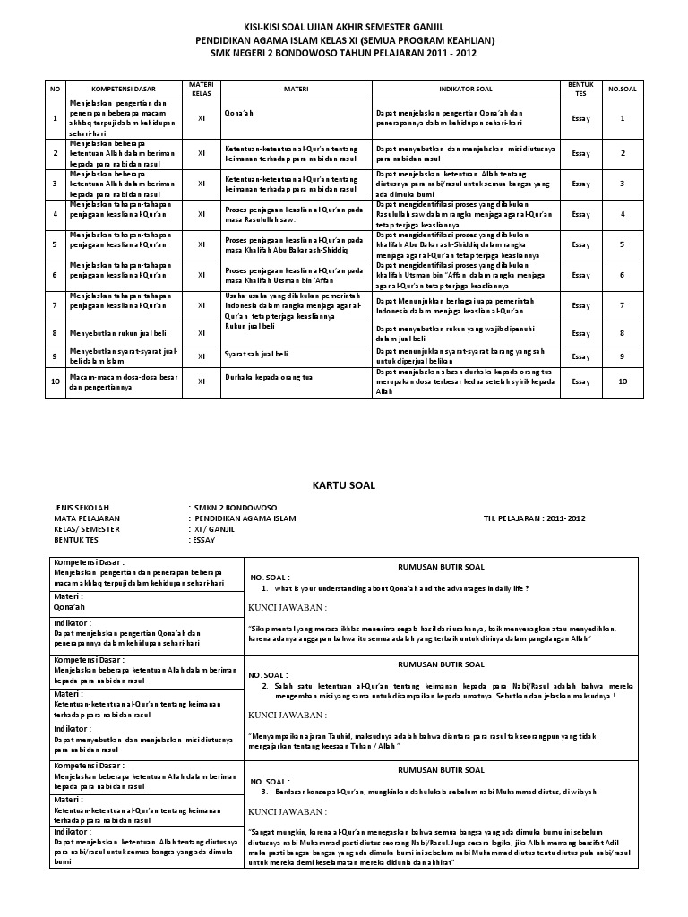 Contoh Soal Essay Pendidikan Agama Islam (Pai) Kelas Xi Semester 1 Beserta Tanggapan Part-3 | sch. paperplane