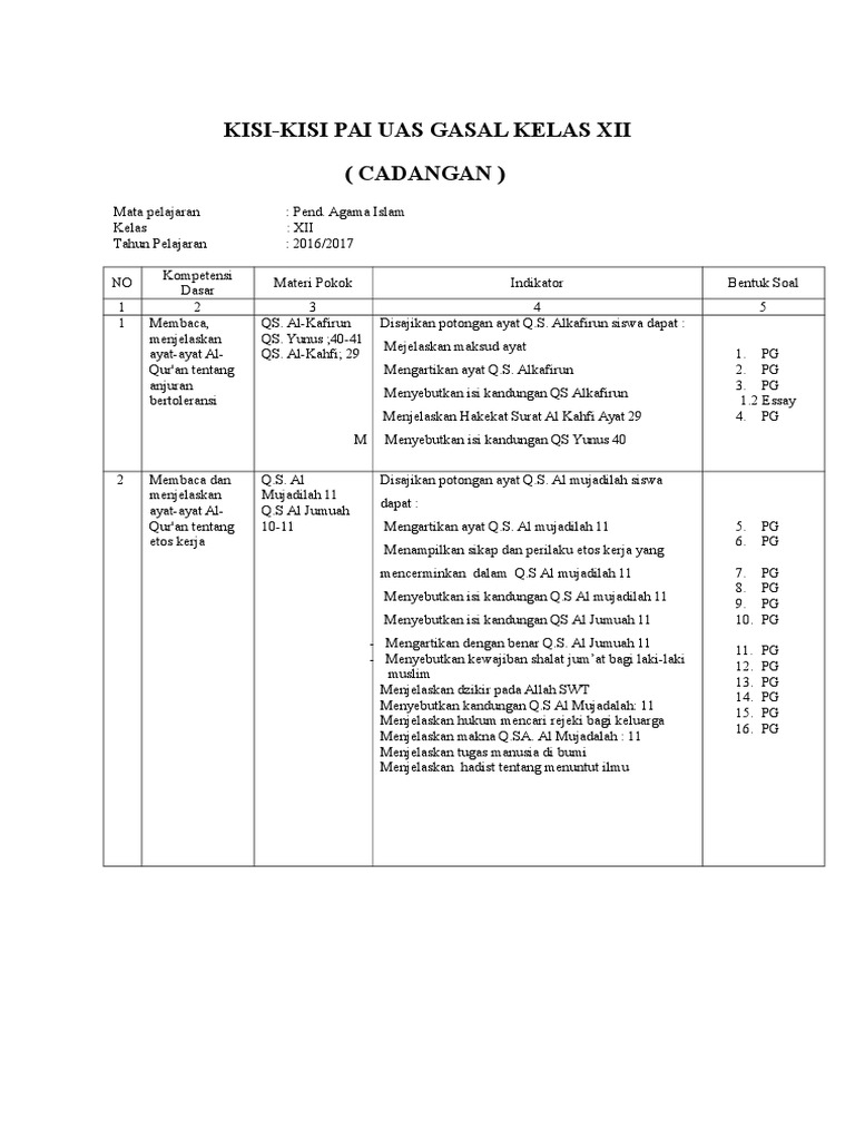 Contoh Soal Essay Pai Kelas Xii Semester 2 Beserta Tanggapan Part-8 | Blog Pendidikan