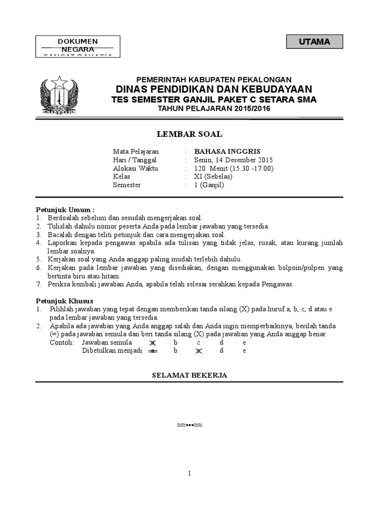 SOAL BAHASA INGGRIS KELAS XI SEMESTER 2 PETUNJUK | Al Khaerul Anam …