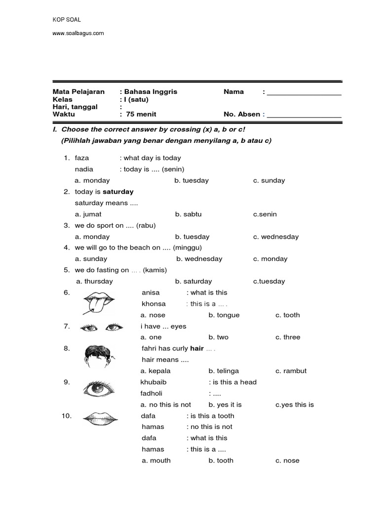 Soal Uts Bahasa Inggris Kelas 3 Sd - workerfasr