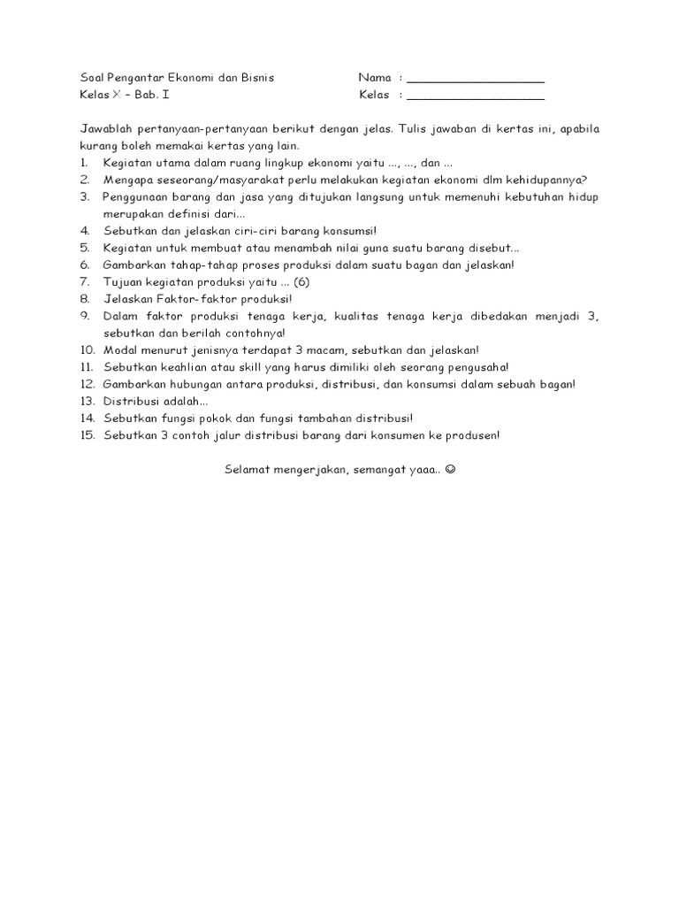 DOC) Soal dan Jawaban Konsep dasar ilmu ekonomi (Kelas 10) | Muhammad Katamso - Academia.edu