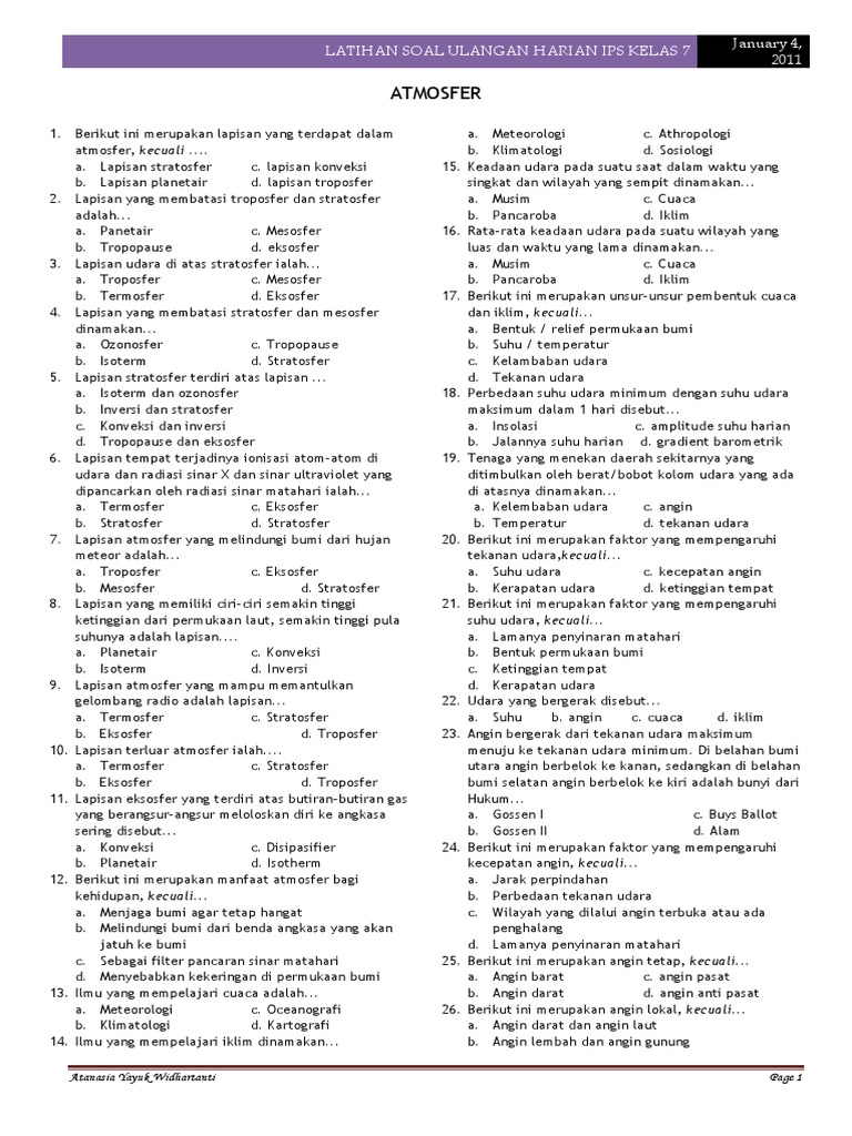 Contoh Soal Atmosfer Dan Jawabannya - Guru Ilmu Sosial