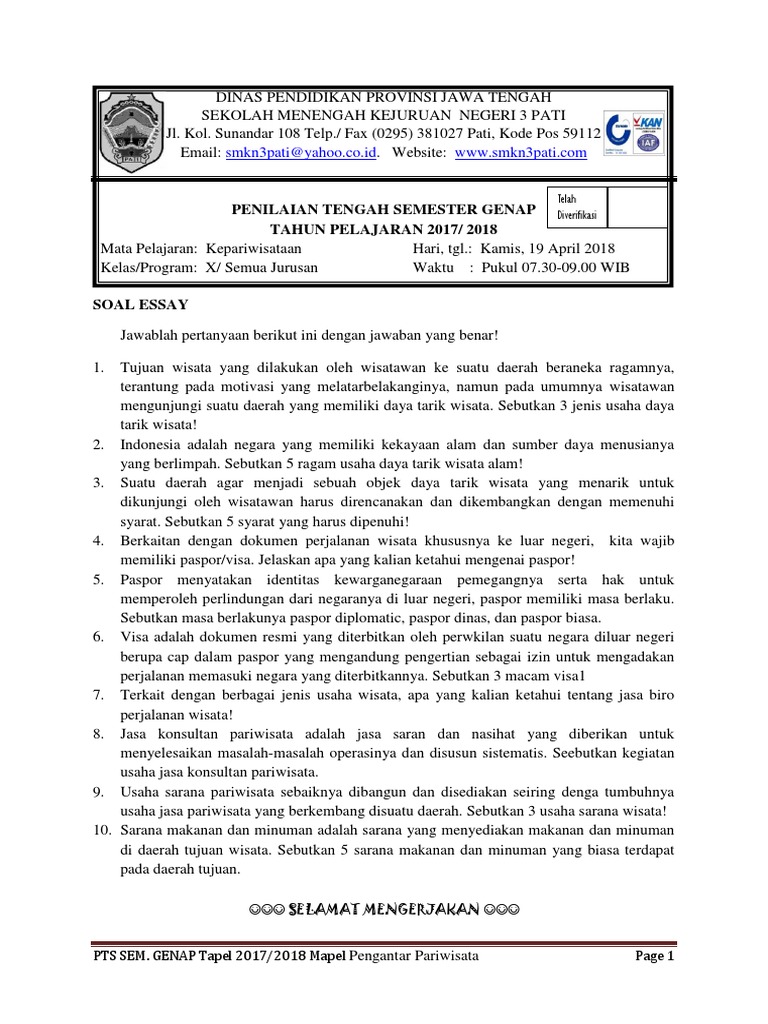 Soal Dan Jawaban Tentang Pariwisata Kelas 10 - Guru Ilmu Sosial