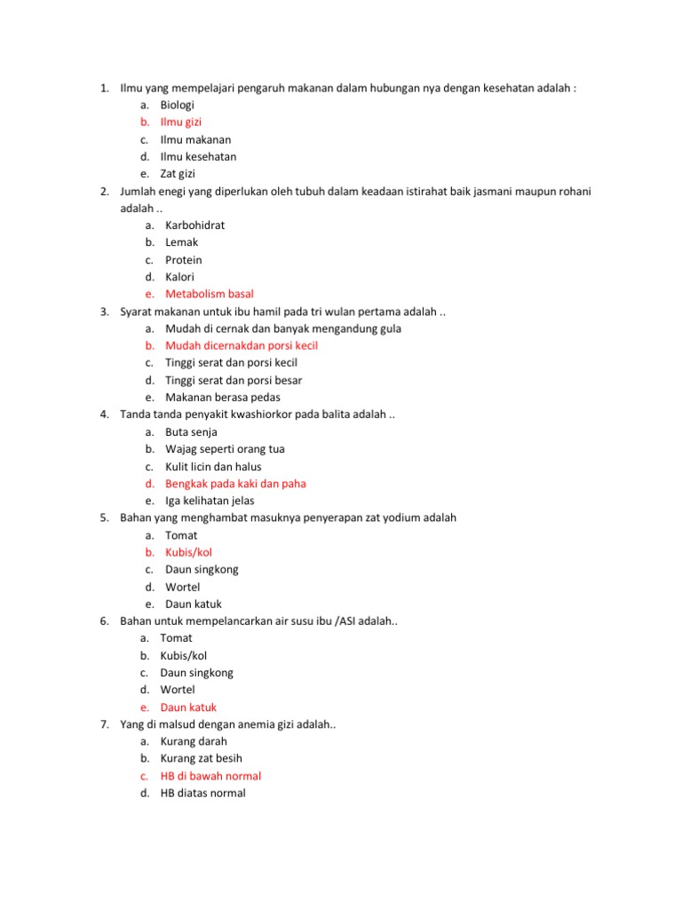 Soal Ilmu Gizi