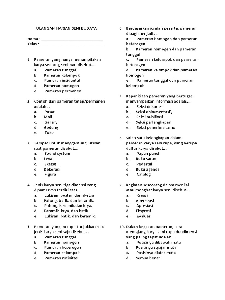 Contoh Soal Seni Budaya Kelas 10 Semester 2 Kurikulum 2013 - Inputsoal.com