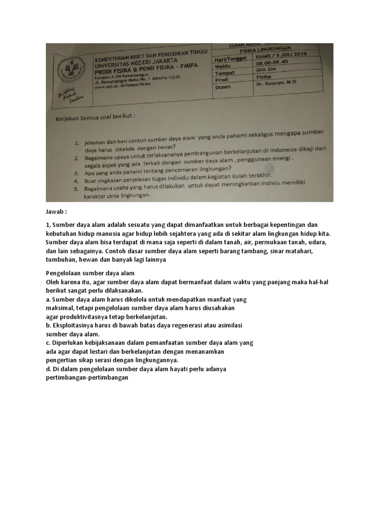 Soal essay dan jawaban lingkungan hidup