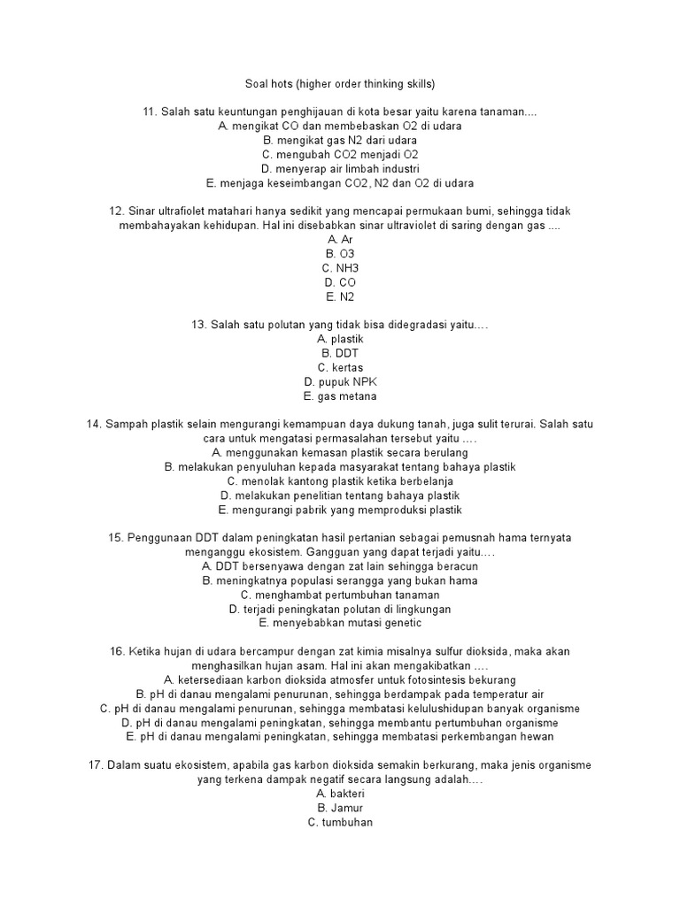 Soal Dan Jawaban Pencemaran Lingkungan