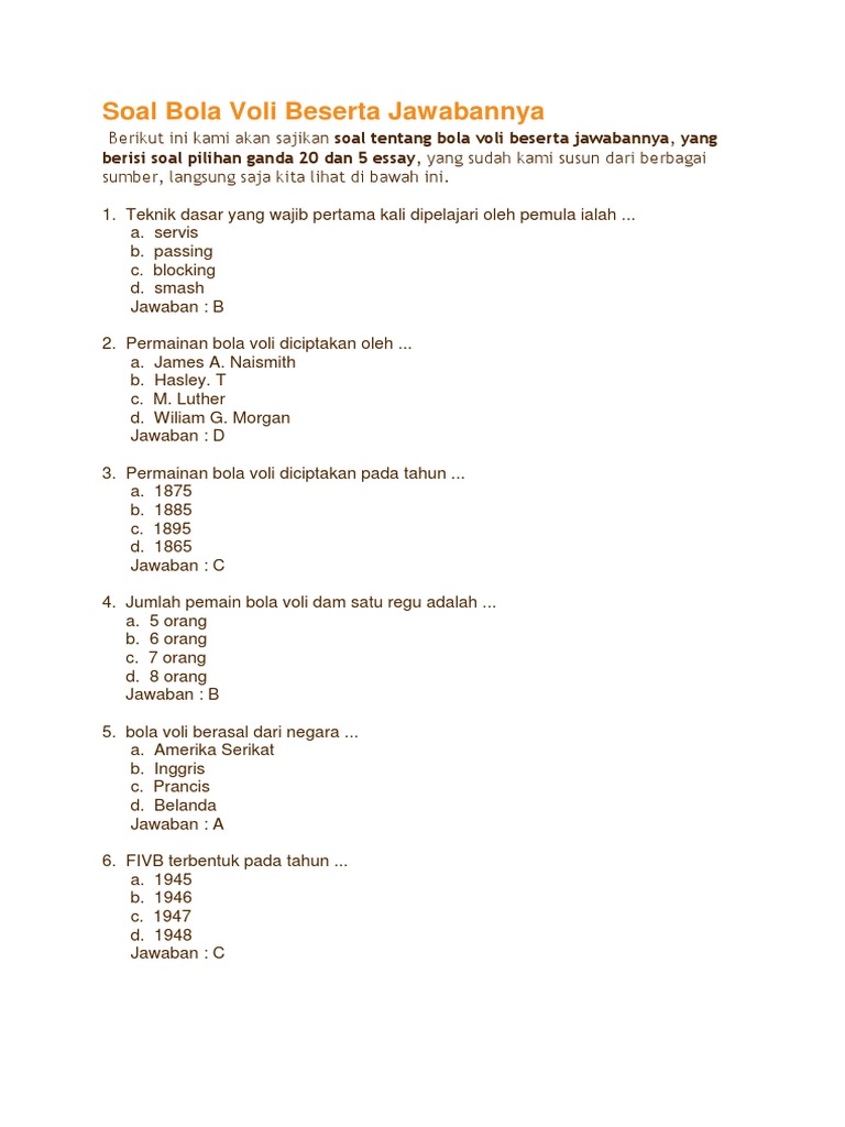Soal Dan Jawaban Penjaskes Tentang Bola Voli - Guru Ilmu Sosial