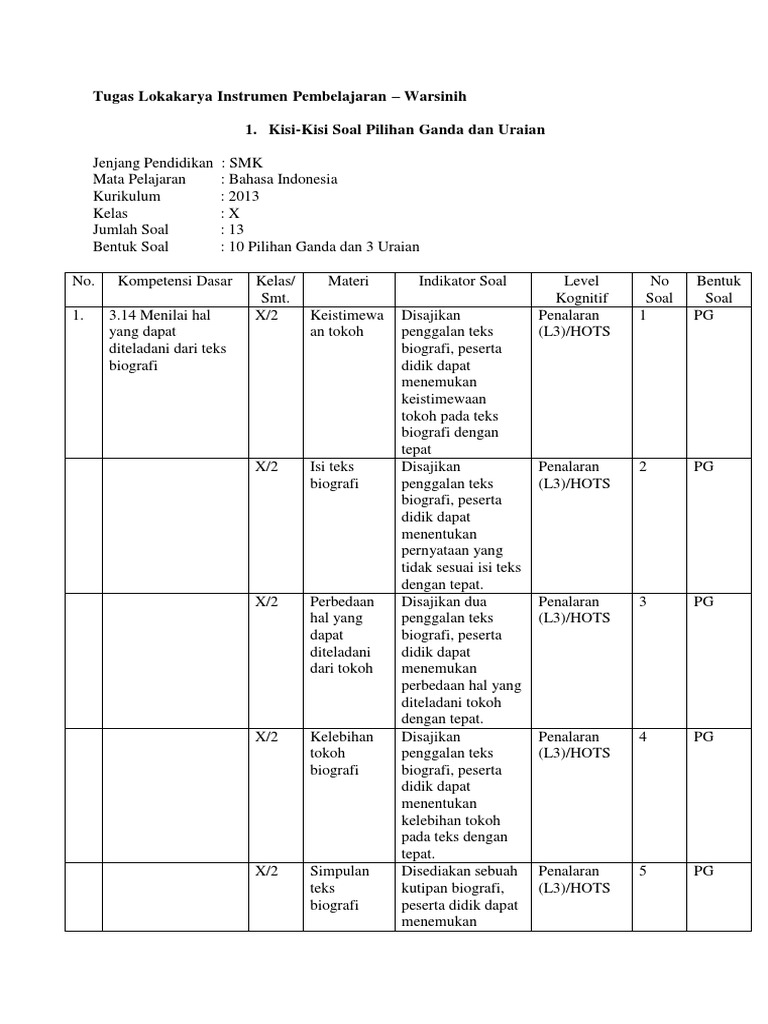 Tugas Lokakarya Instrumen Penilaian – Warsinih