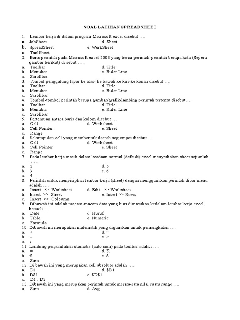 Kumpulan Soal Spreadsheet Beserta Jawaban - Guru Ilmu Sosial