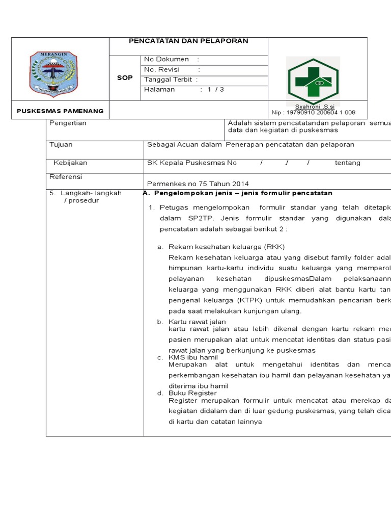 Sop Pencatatan Dan Pelaporan