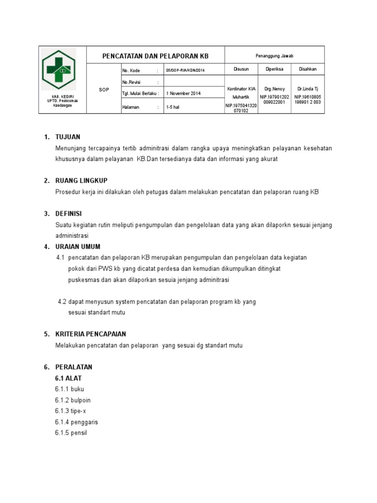 Sop Pencatatan Pelaporan Kb