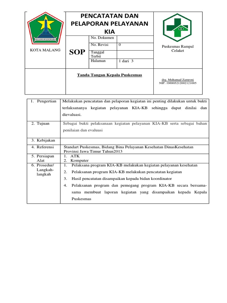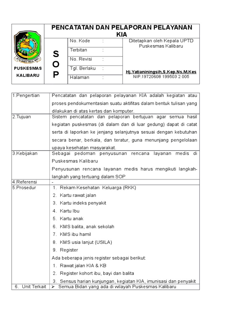 Sop Pencatatan Dan Pelaporan Kia - Seputar Laporan