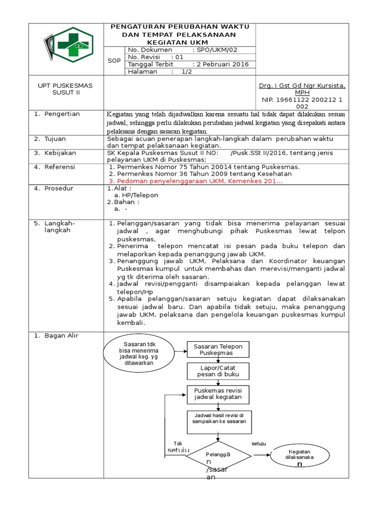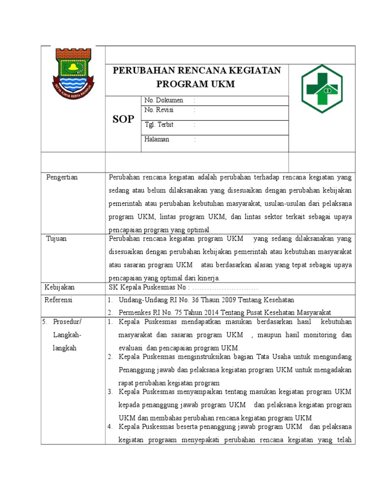 Sop Perubahan Rencana Kegiatan Program Ukm