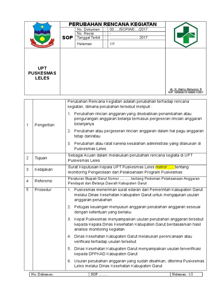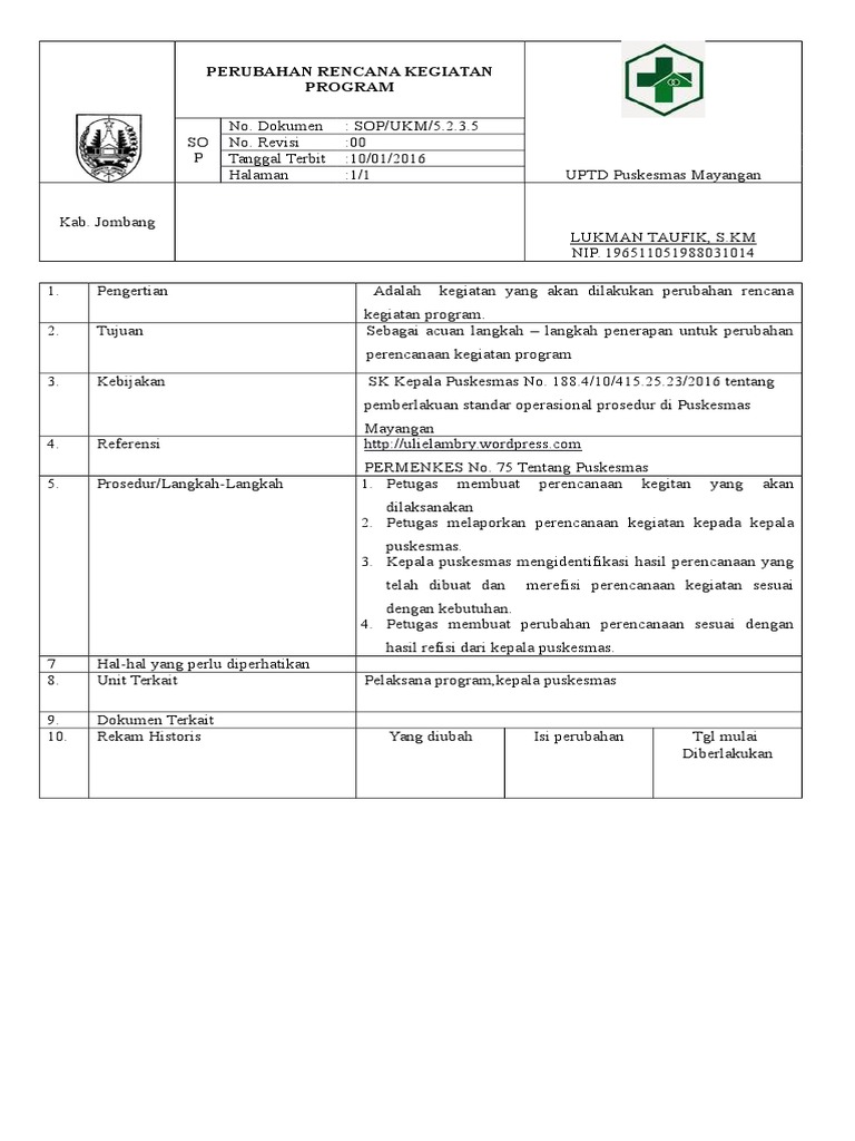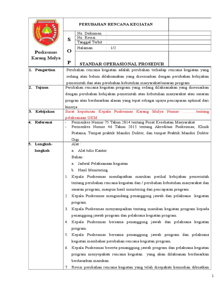 Sop Perubahan Rencana Kegiatan Program