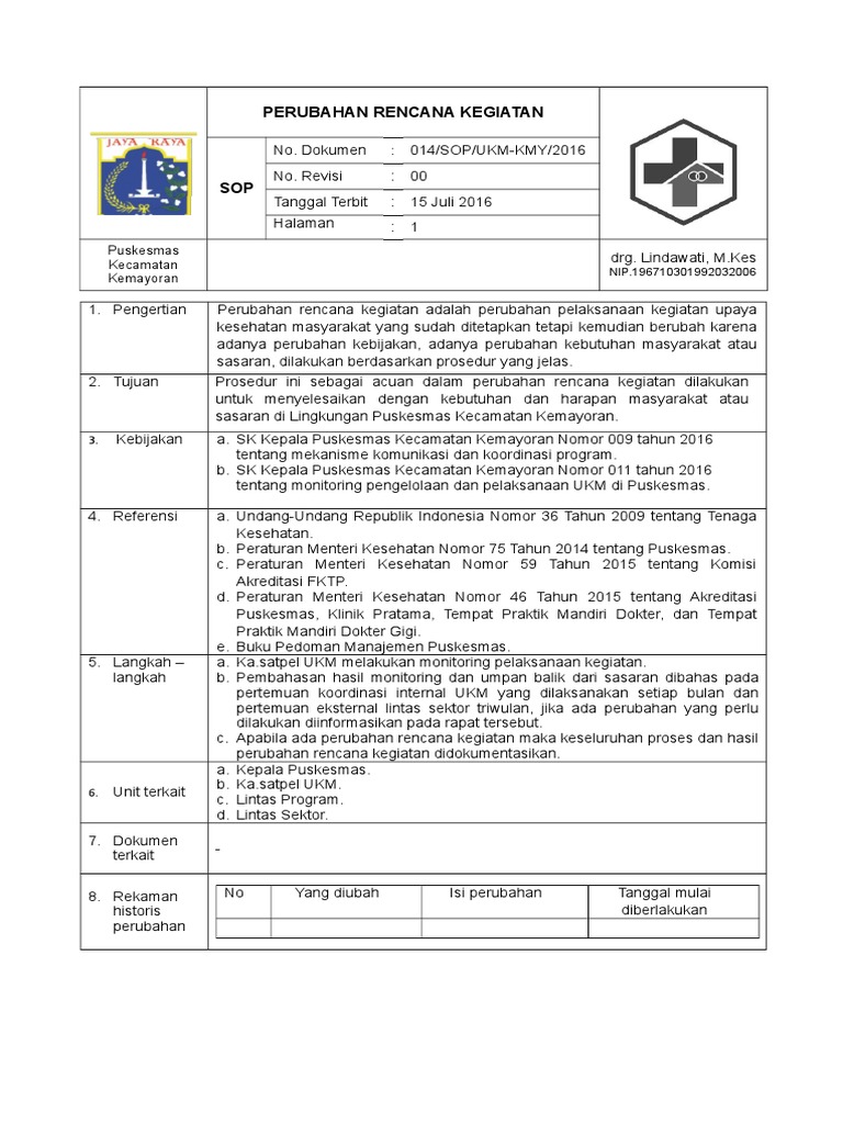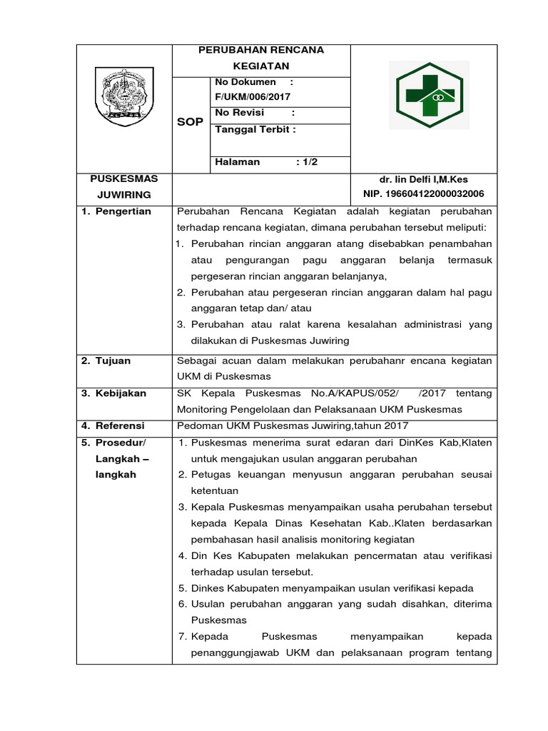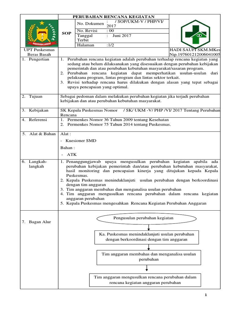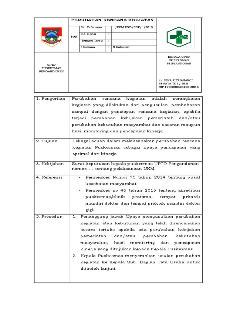 Sop Perubahan Rencana Kegiatan Ok