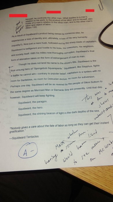 An essay by Spongebob Squarepants : WhitePeopleTwitter