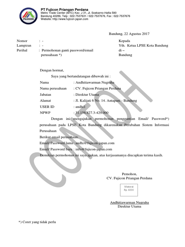 Contoh Surat Permohonan Ganti Email Perusahaan LPSE