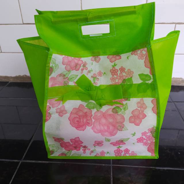 12pcs Tas Kain Syahrini Bunga utk 2dus 22x22 Goodie Bag Hajatan syukuran parcel Spunbond | Shopee Indonesia