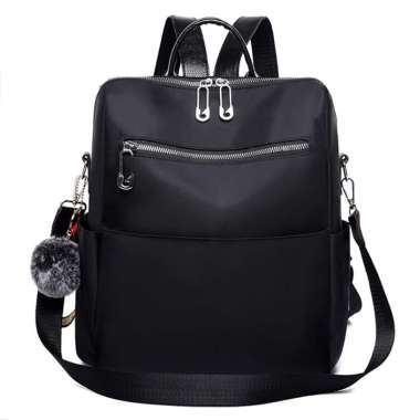 Tas Ransel Gendong Bagpack Hitam Besar Wanita Simple Kain Waterproof | elevenia