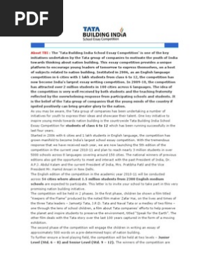Tata Building India School English Essay Competition …