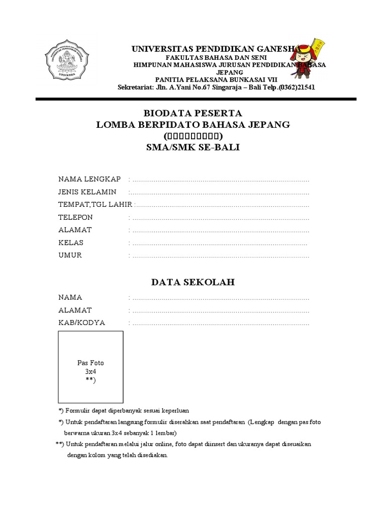 Formulir Pendaftaran Lomba Pidato Bahasa Jepang