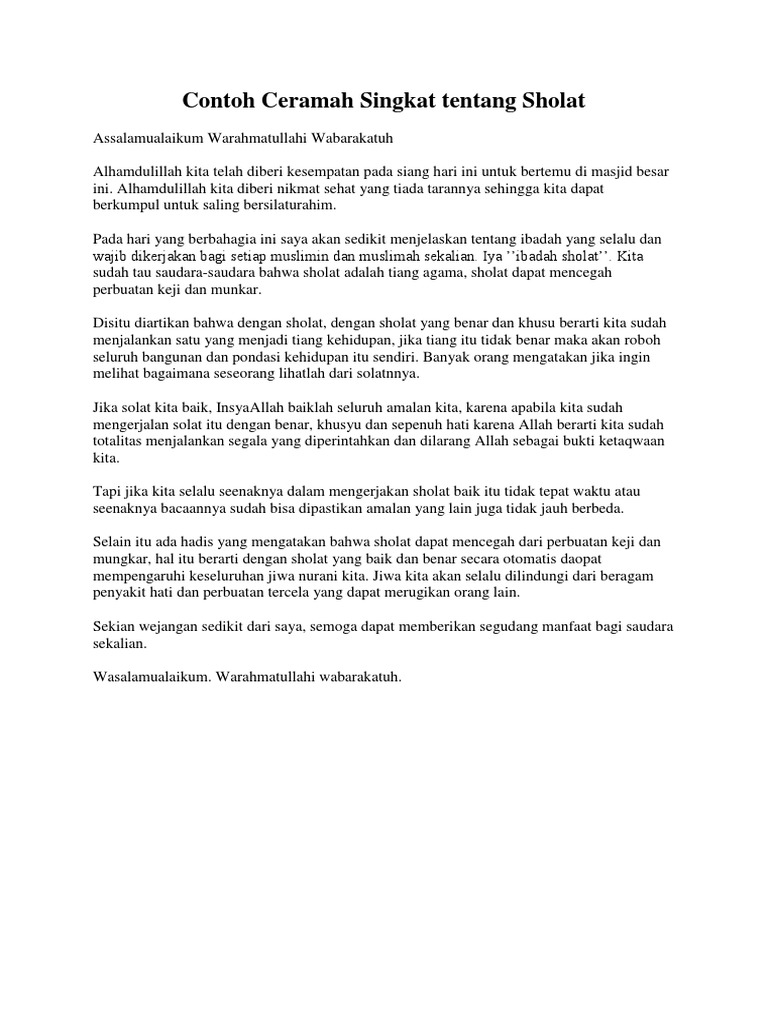 Sholat Pidato Singkat Tentang Agama