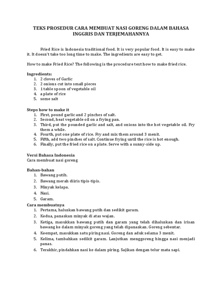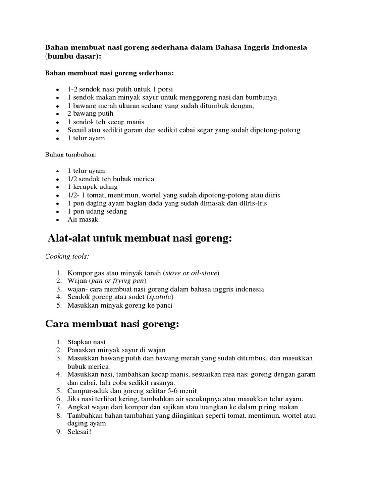 Cara Membuat Nasi Goreng Dalam Bahasa Inggris Indonesia 2018