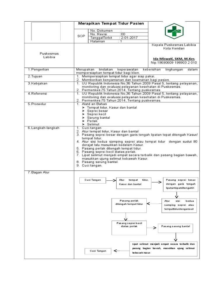 Standar Operasional Prosedur Merapihkan Tempat Tidur ( Sop Bad Making )