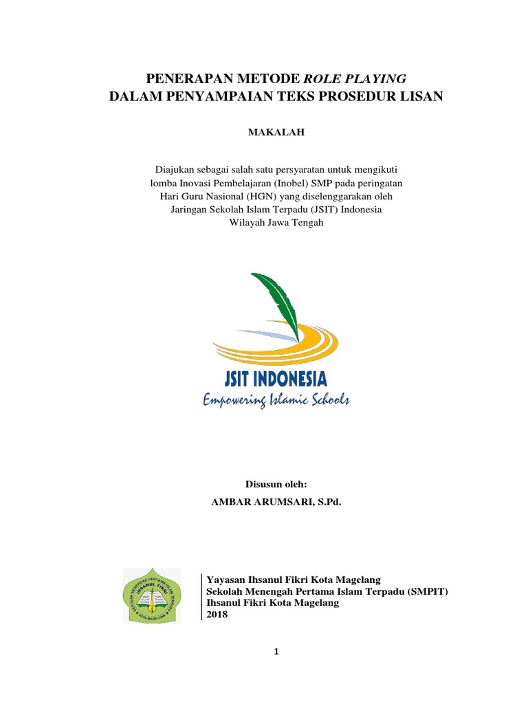 Metode Role Playing (Bermain Peran) dalam Penyampaian Teks Prosedur secara Lisan