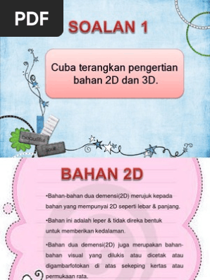 Cuba terangkan pengertian bahan 2D dan 3D
