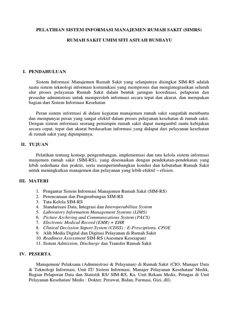 BIMTEK DIKLAT PELATIHAN SISTEM INFORMASI MANAJEMEN RUMAH SAKIT (SIM-RS) | PUSDIKLAT PUSDIKIPD | Pusat Pendidikan Keuangan & Inovasi Pemerintah Daerah