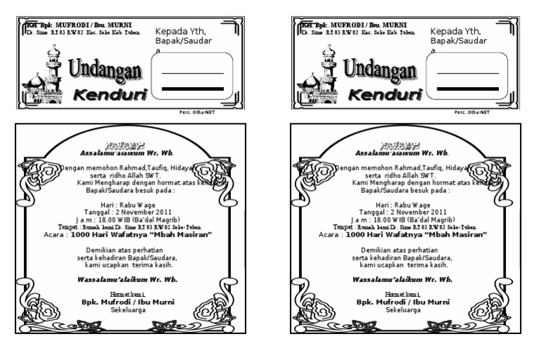 Undangan Tahlil 1000 Hari Doc | Blog Stress