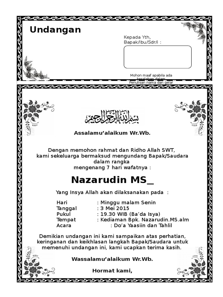 DOC) Contoh Surat Undangan Tahlil 40, 100, 1000 hari (haul) | Dhenmas Eko Mqn - Academia.edu