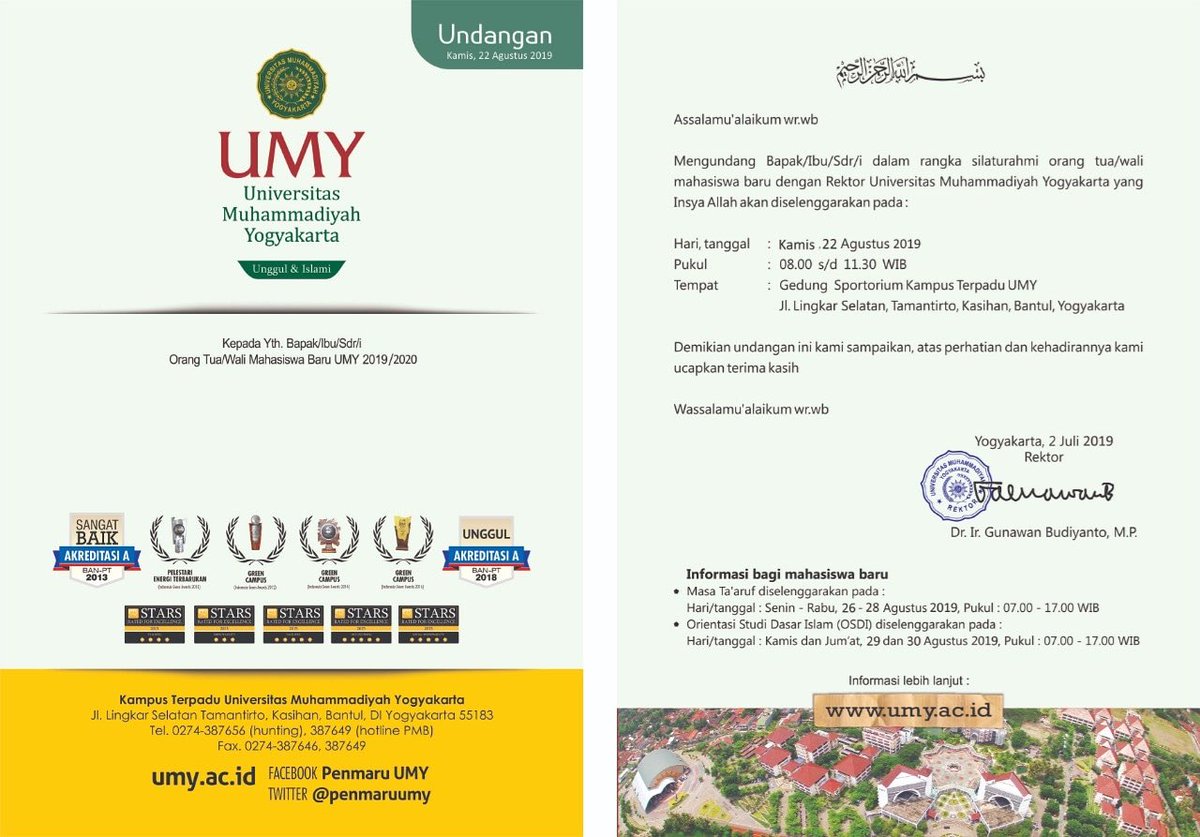 Undangan Silaturahmi Orang tua Mahasiswa Baru UMY 2018/2019 | Universitas Muhammadiyah Yogyakarta